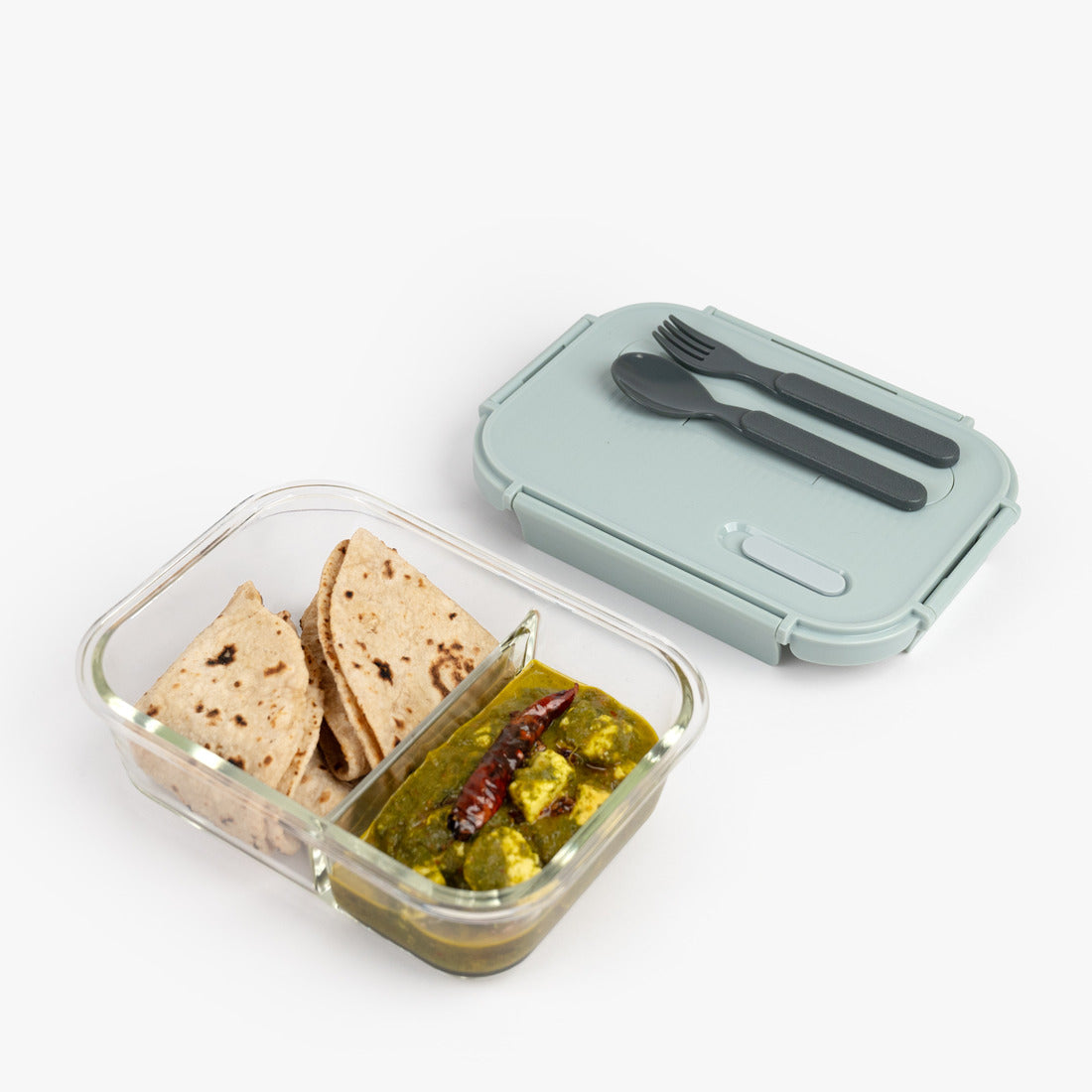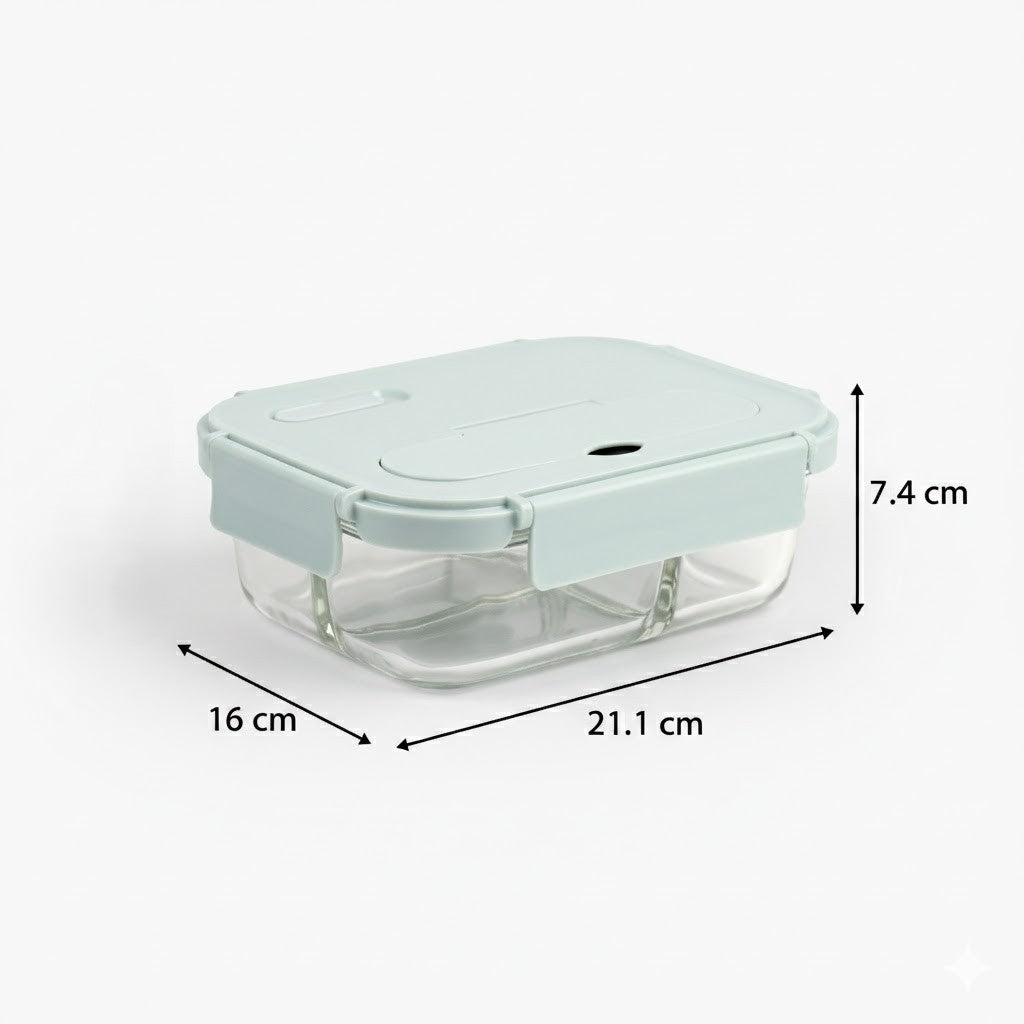 1 × Two-Compartment Borosilicate Glass Food Storage Container (1050 ml)