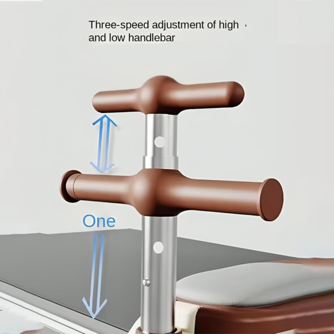 The perfect companion for toddlers on the go! This 3-in-1 Ride-On Toy with a safety guard seat, waterproof cushion, and hidden storage offers multifunctional use—whether sitting, being pushed, or storing essentials. Designed for toddlers aged 2 to 5, it combines fun and practicality. Featuring a stable, stationary T-shaped handlebar for support, anti-slip wheels, and a compact frame, it is designed to be pushed or pulled, making it ideal for travel or indoor play. Easy to carry and store, it doubles as a booster seat for meals or rest stops.