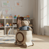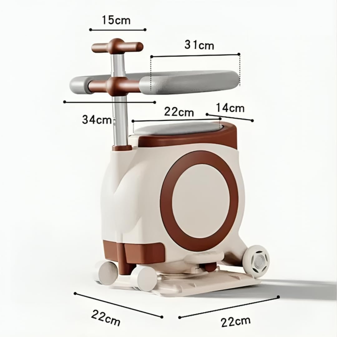 - 3-in-1 Versatile Ride-On Toy: This multifunctional companion serves three purposes: a fun ride-on toy, a portable travel seat, and a spacious storage trunk. It is designed to be pushed or pulled by parents or the child, offering a fun way to travel without the complexity of a real scooter.