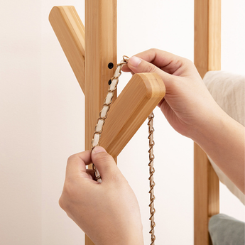 Install the coat rack on a stable and even floor to maintain balance and safe rotation. -
