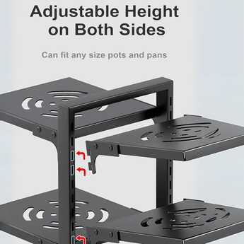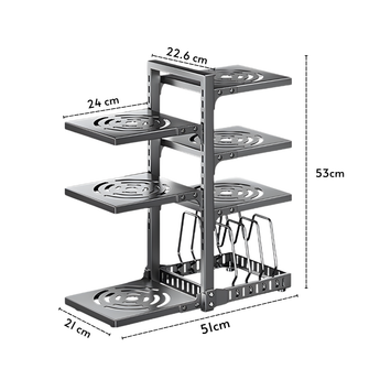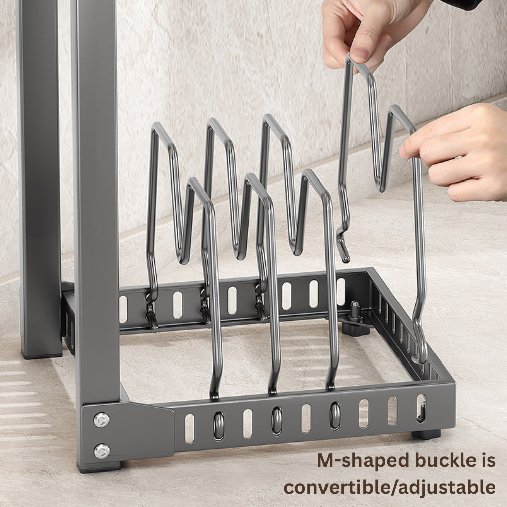 The removable and adjustable 7-tier design allows you to customize shelf spacing according to your cookware size. Whether you need space for large stockpots or small frying pans, this rack offers a versatile, personalized storage solution to keep your kitchen organized.