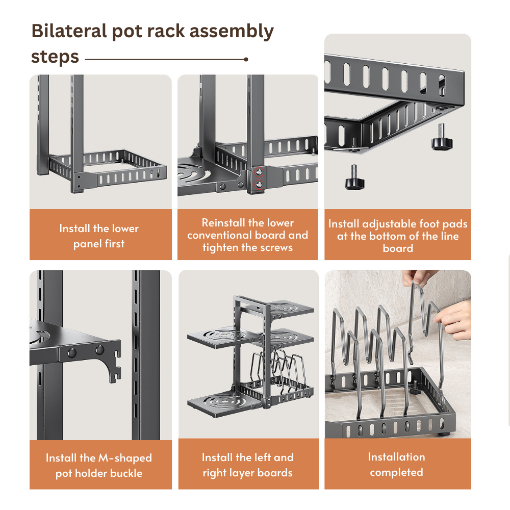Made from high-quality stainless steel with a polished finish, this rack is rust-proof, corrosion-resistant, and easy to clean. It maintains its strength and stability even with frequent use, ensuring your cookware stays secure and damage-free.