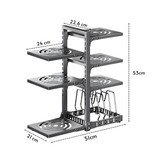 Designed to maximize kitchen efficiency, this organizer can be used vertically or horizontally to fit into cabinets, countertops, or under sinks. Its compact yet spacious structure frees up cupboard space, making cookware easily accessible while eliminating clutter.
