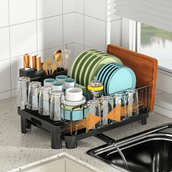 - Multi-Level Storage Capacity – Double-layer racks provide separate spaces for bowls (upper level) and plates/utensils (lower level), with included cutlery slots to keep everything organized and within easy reach.