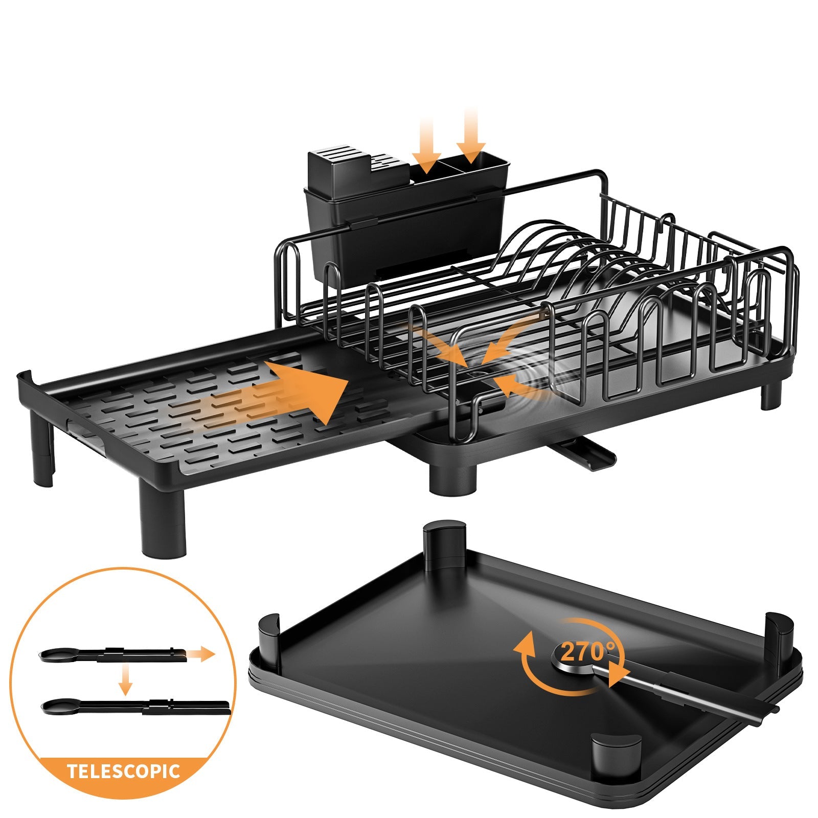 Adjustable Double-Layer Bowl Rack with Drainer (44cm)
