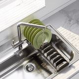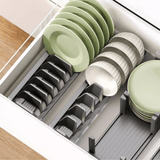 Adjustable Kitchen Drawer Dish Drying Rack with Drain Tray