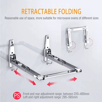 Adjustable & Foldable Design: The depth adjusts from 22 cm to 40 cm and width from 29.5 cm to 56.5 cm, fitting most standard microwaves and folds away to save space.