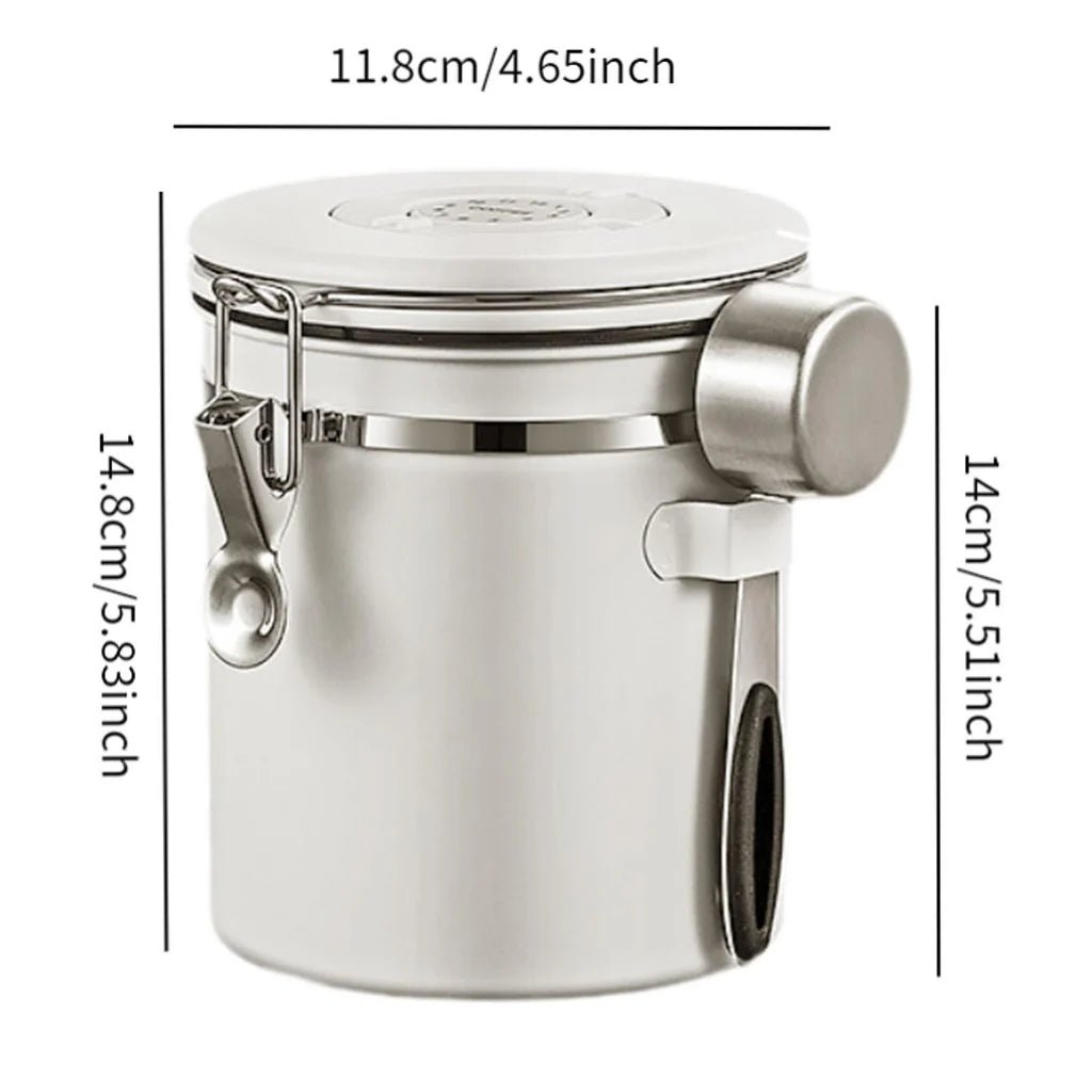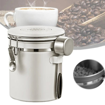 Keep your coffee beans fresher for longer with this 304 stainless steel vacuum storage jar, designed to lock in aroma and flavor. The airtight one-way valve releases carbon dioxide without letting air or moisture in. Equipped with a built-in date tracker and a stainless-steel measuring spoon, this container ensures optimal freshness and easy portioning. Ideal for coffee beans, tea leaves, nuts, grains, and spices. Durable, stylish, and food-safe, it’s the perfect addition to any modern kitchen.