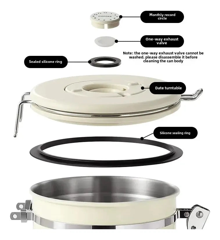 Equipped with a silicone sealing ring and secure lock structure, this canister blocks air from entering while the one-way exhaust valve naturally releases carbon dioxide from freshly roasted beans, helping preserve original aroma and taste longer.