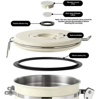 The integrated date wheel on the lid allows you to log the roasting or storage date, so you always know the freshness period. This smart design helps you consume coffee or dry goods at the peak of their flavor.