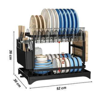 Introducing the 2 Tier Dish Drain Rack, an essential addition to any kitchen for efficient dish drying and organization. Crafted with convenience and functionality in mind, this dish rack boasts a thoughtful design with practical features to streamline your kitchen chores. Say goodbye to cluttered countertops and hello to a tidy, organized space with this versatile dish-drying solution.