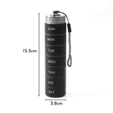 Designed with modular stackable compartments that allow you to carry just the days you need. Compact enough to fit in a pocket or bag.