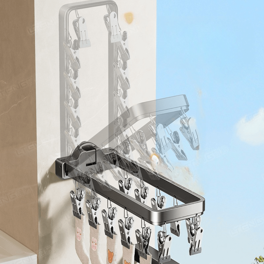The drying rack is equipped with powerful clamps that provide a firm grip, preventing socks and small garments from slipping off. Made with high-strength carbon steel, it ensures long-lasting durability. Whether drying thick or thin fabrics, the bite-force clamp keeps everything in place, making it perfect for indoor and outdoor use.
