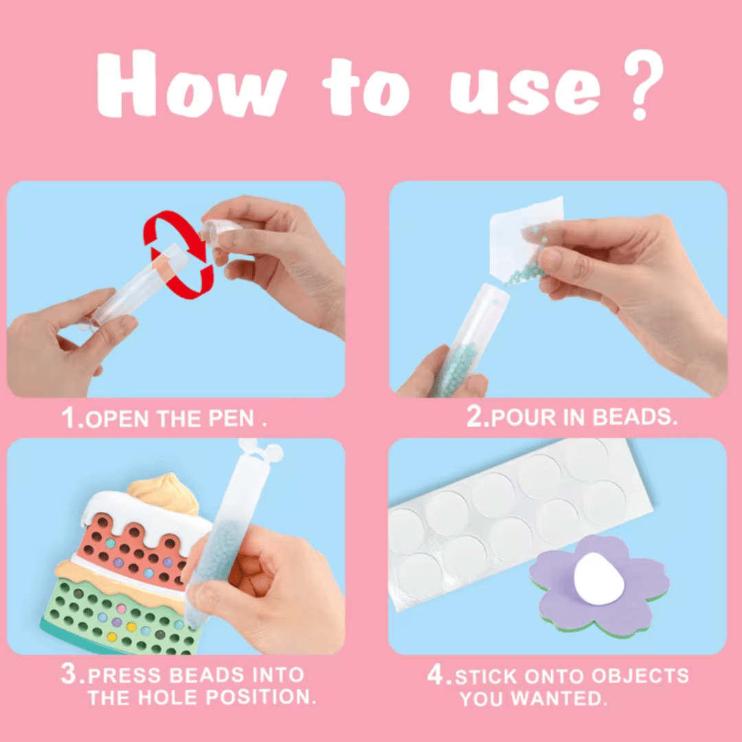- Multi-Purpose Usage: Perfect for decorating objects like notebooks, toys, or accessories. The bead pen inspires kids to turn everyday items into personalized treasures.