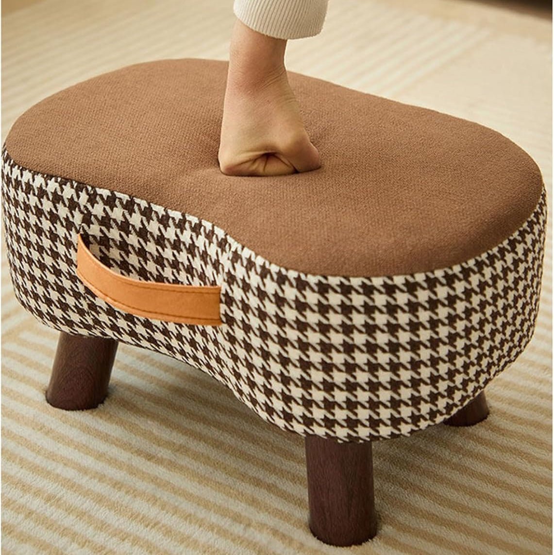 Add a touch of cozy comfort to any room with our versatile soft-covered stool. Compact yet sturdy, it works perfectly as a footrest, coffee table seat, or shoe bench. Crafted with a solid wood frame and plush high-resilience sponge, it’s durable, comfy, and lightweight to carry with its handy strap. Available in cheerful colors, this mini stool blends into any modern living space while providing practical extra seating wherever you need it.