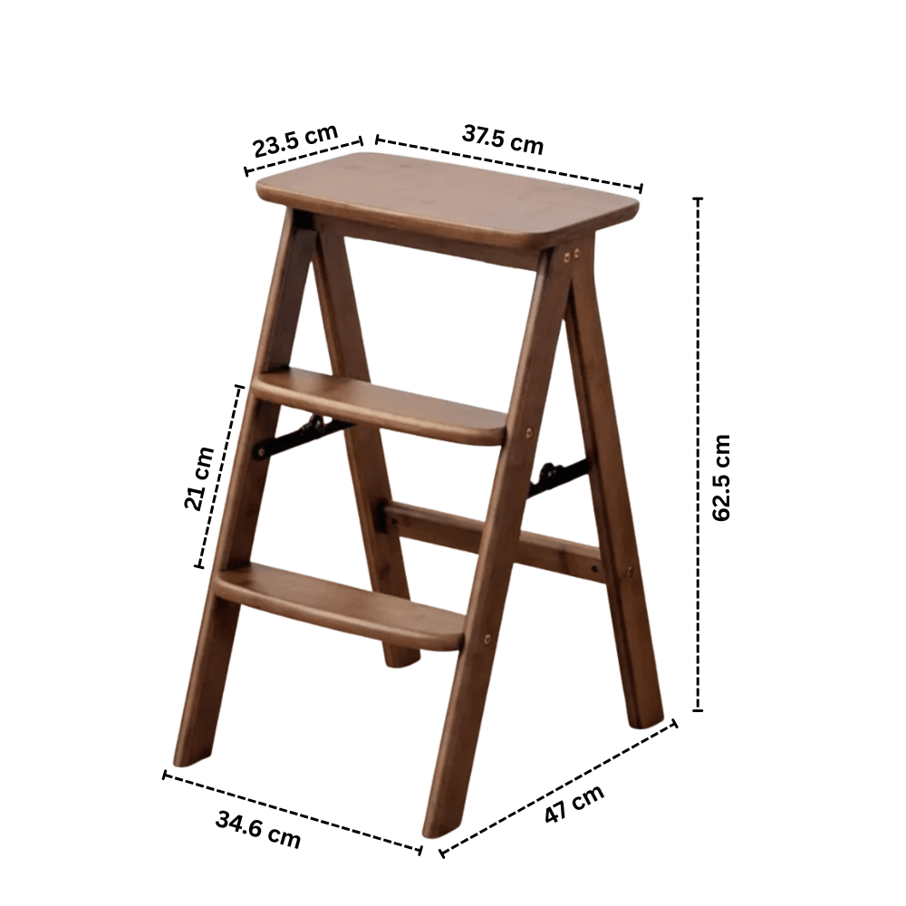 Crafted from premium nanmu wood, this elegant wooden step stool combines functionality with timeless design. Whether reaching high shelves or adding a rustic accent to your home, its sturdy structure and compact build make it a versatile household companion. With a foldable form, thick steps, and warm walnut finish, it offers style without compromising safety or durability. Ideal for everyday use in the kitchen, living room, or bedroom.