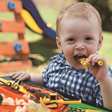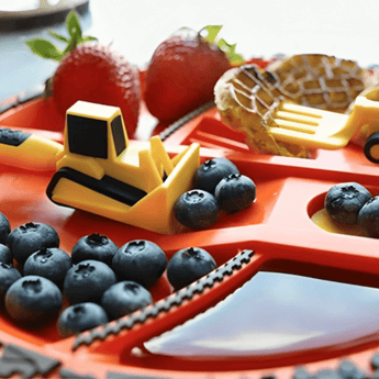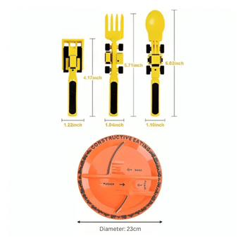 This set transforms ordinary meals into playful adventures. The construction-themed plate features ramps and compartments that interact with the utensils, making mealtime more entertaining. Kids will love pushing, scooping, and lifting their food using the bull dozer pusher, front loader spoon, and forklift fork.