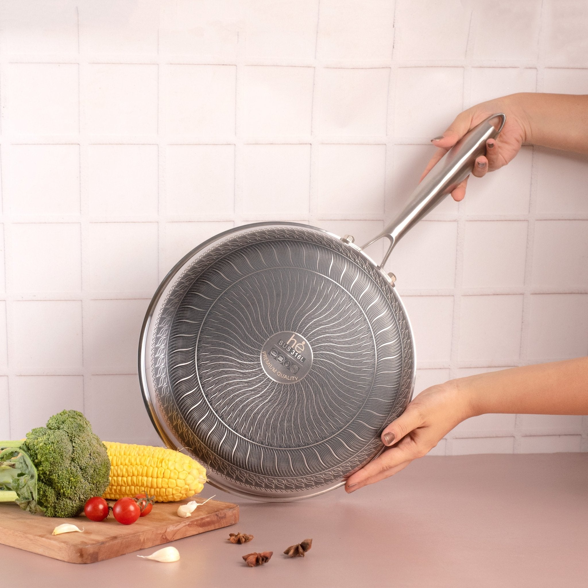 Experience effortless cooking with our 316 stainless steel frying pan, designed for durability and even heat distribution. Its non-stick honeycomb texture ensures that the food doesn’t stick, making it ideal for frying eggs, steak, and vegetables. Compatible with induction, gas, and electric stovetops, this pan offers a healthier cooking experience.