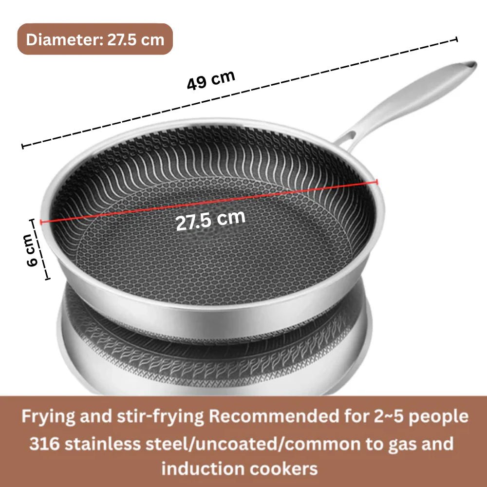 Double Sided Multipurpose Stainless Steel Non-Stick Honeycomb Frying Pan (26cm)