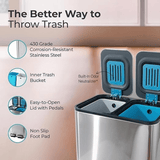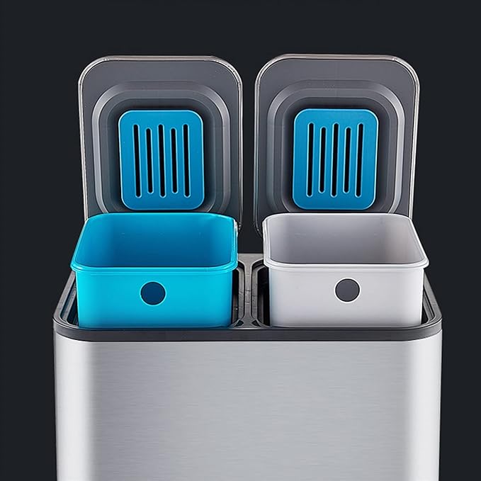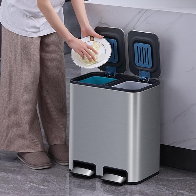 - Dual Compartment Design: The innovative two-section design provides separate 9L spaces for convenient waste sorting, allowing simultaneous disposal of recyclables and regular trash in one streamlined unit.