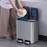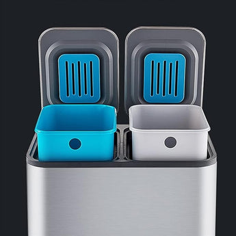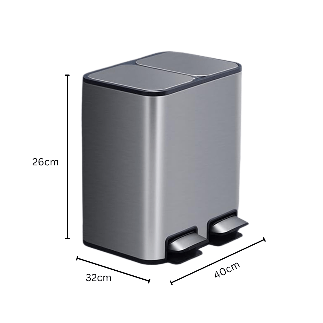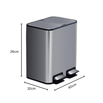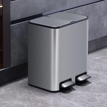 Organize your recycling effortlessly with this premium 18L capacity trash can featuring dual compartments. The brushed stainless steel construction offers durability while maintaining a sleek, modern aesthetic. Each 9L compartment operates independently with soft-close lids that prevent slamming, and the airtight seal effectively contains odors. Perfect for kitchens, offices, or commercial spaces requiring efficient waste sorting.