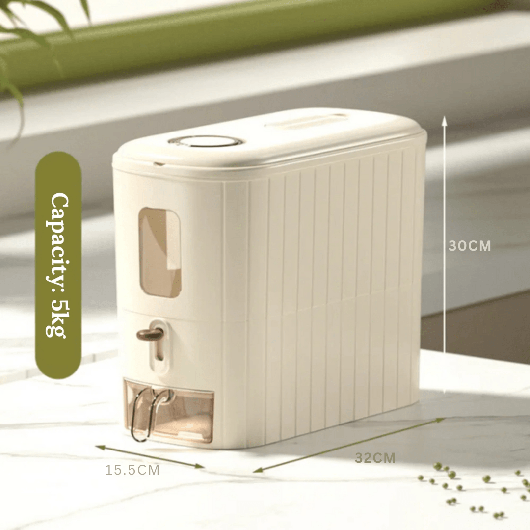 Easily dispense the desired quantity of rice with a simple press. This feature saves time and makes daily use hassle-free, regardless of where the container is placed.