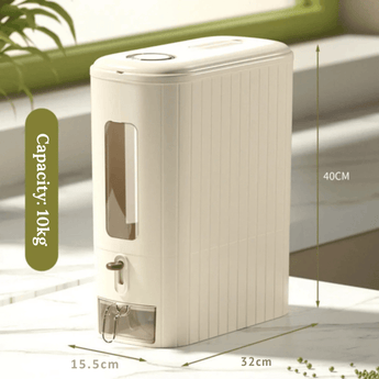 Keep your rice fresh and hygienic with this Durable Moisture-Proof Food Storage Container. Designed for convenience, it features a press-to-dispense mechanism, a transparent viewing window, and a built-in box. Made from food-grade plastic, it's a reliable and safe addition to your kitchen.