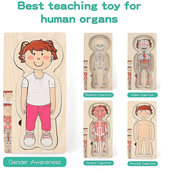 Introduce your child to the human body with our Wooden Human Body Puzzle for Kids. This 29-piece set teaches body parts, organs, muscles, and bones in a fun way. Crafted from durable wood, it's safe and non-bendable for long-lasting play.