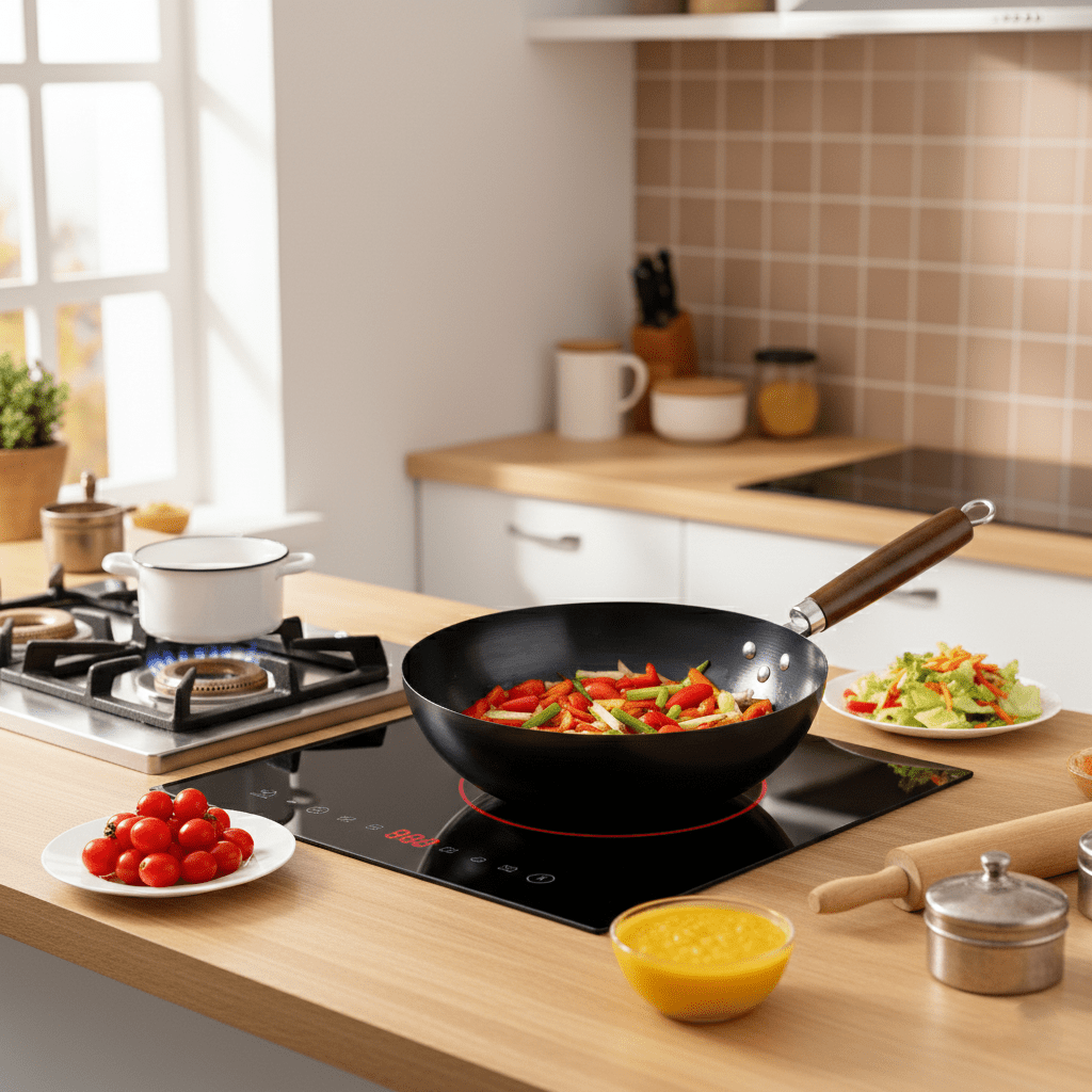 Absolutely. The Fine Iron Cooking Pan works on both gas and induction stoves, making it a versatile iron cooking pan for modern kitchens.