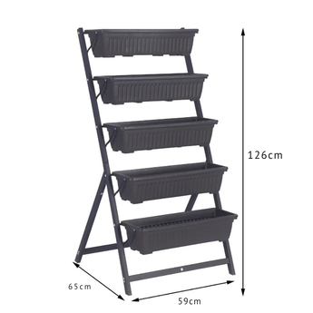Five Layer Iron Vertical Plant Stand with Plastic Flower Pots