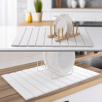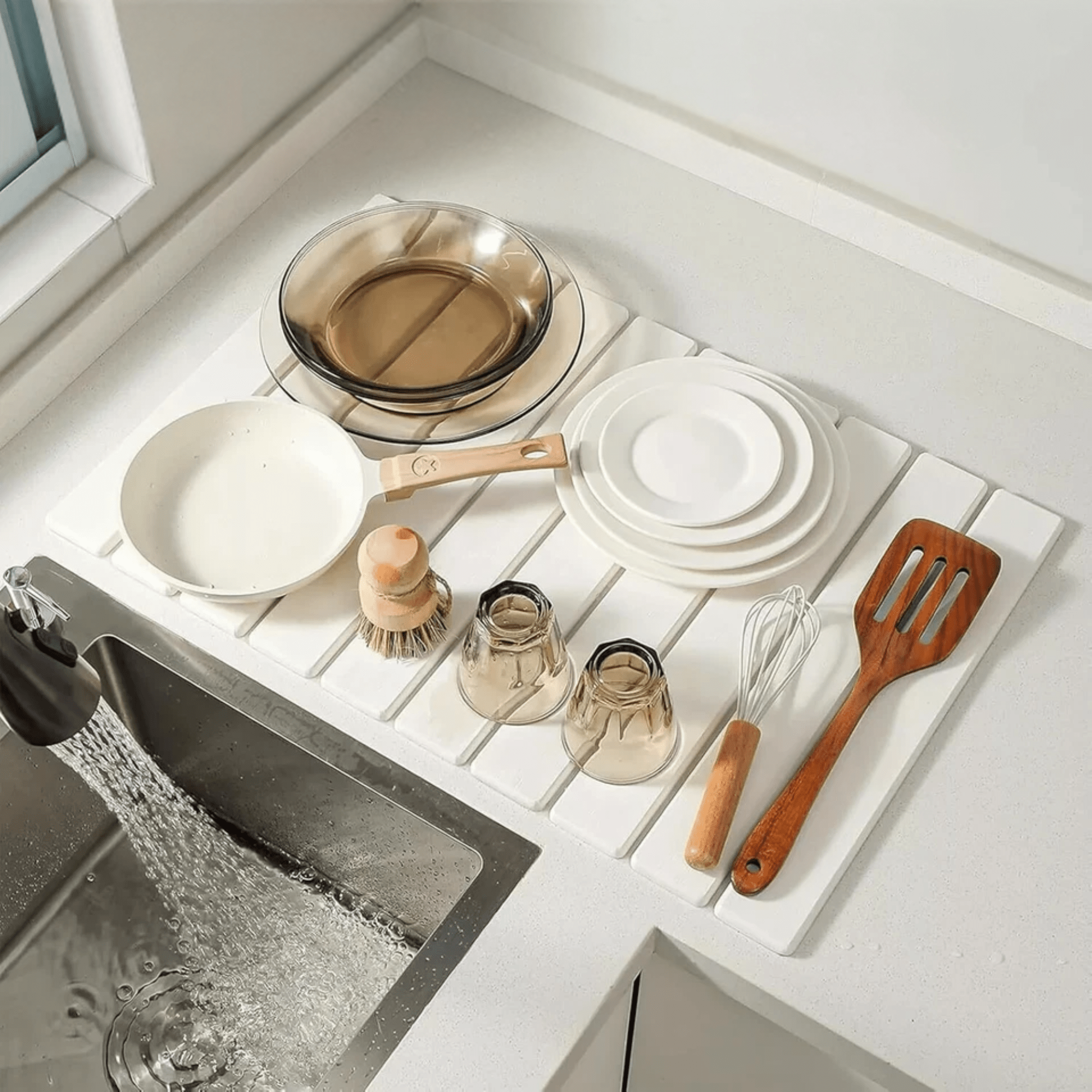 Crafted from diatom mud, this foldable and quick-drying mat is ultra-absorbent, non-slip, and ideal for use in kitchens, bathrooms, or under plants and pet bowls.