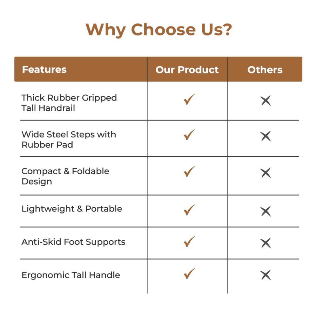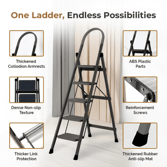 - 5 Wide Anti-Slip Steps: Extra-wide steps with textured surfaces offer secure footing and enhanced comfort.