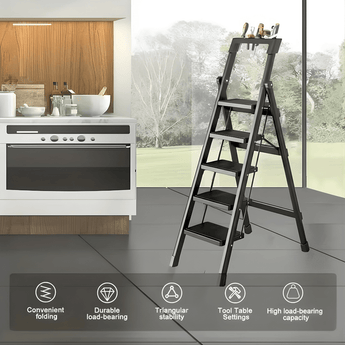The Heavy Duty Metal Folding Step Ladder with Tool Tray is designed to provide maximum stability, safety, and convenience for everyday home and professional use. Built with a strong metal frame and wide anti-slip steps, it ensures secure footing while working at height. The integrated tool tray on top keeps tools, screws, paint cans, and accessories within easy reach, improving efficiency and reducing repeated climbing. Its foldable design allows easy storage in compact spaces, making it ideal for homes, garages, workshops, and offices.