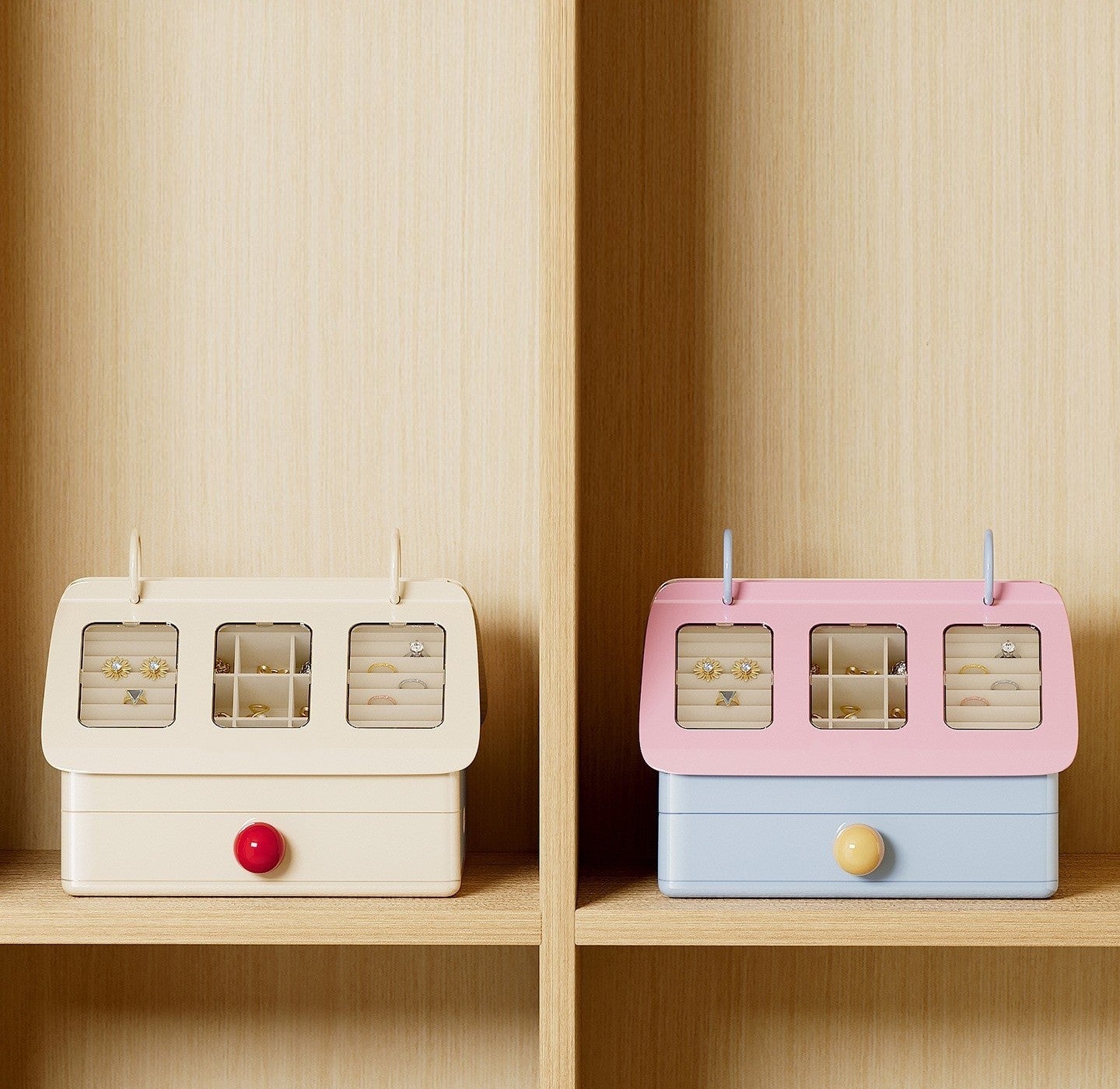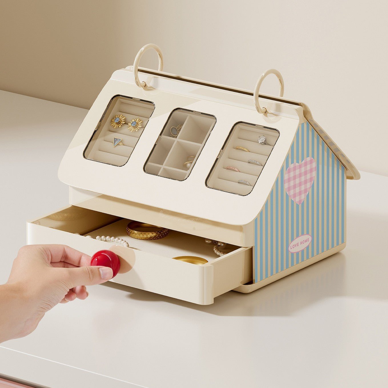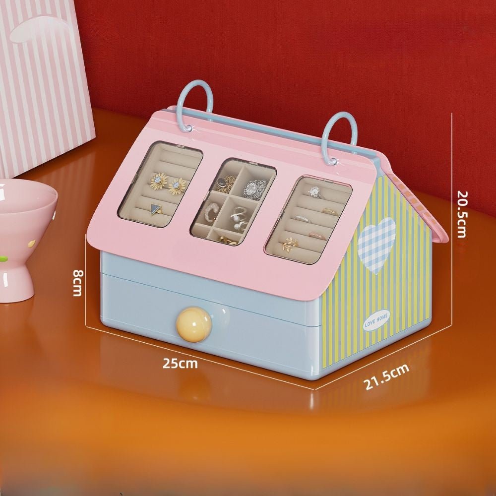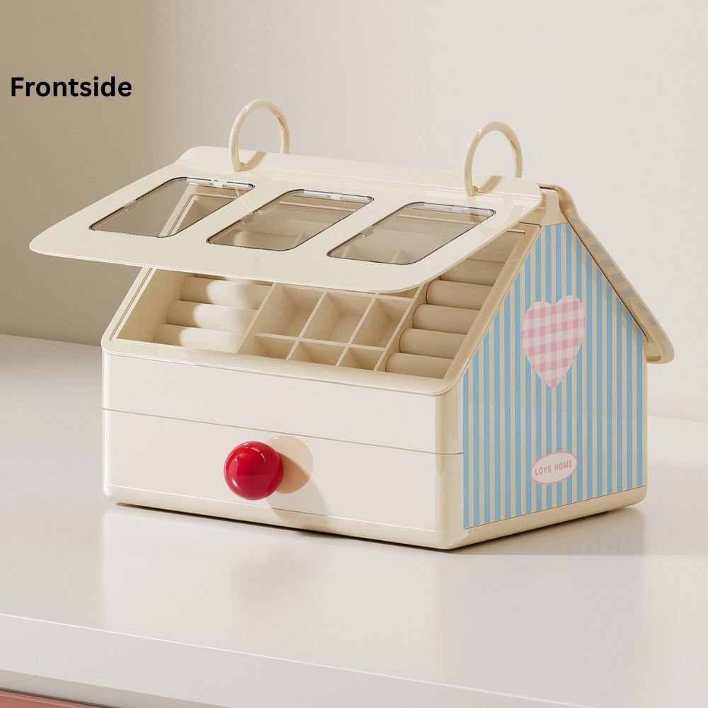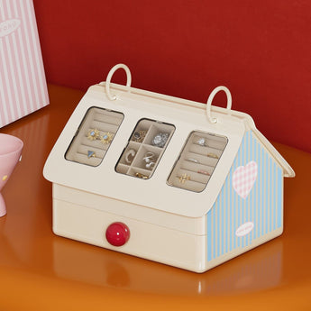 House-Style Multi-Compartment Jewelry Box with Transparent Window