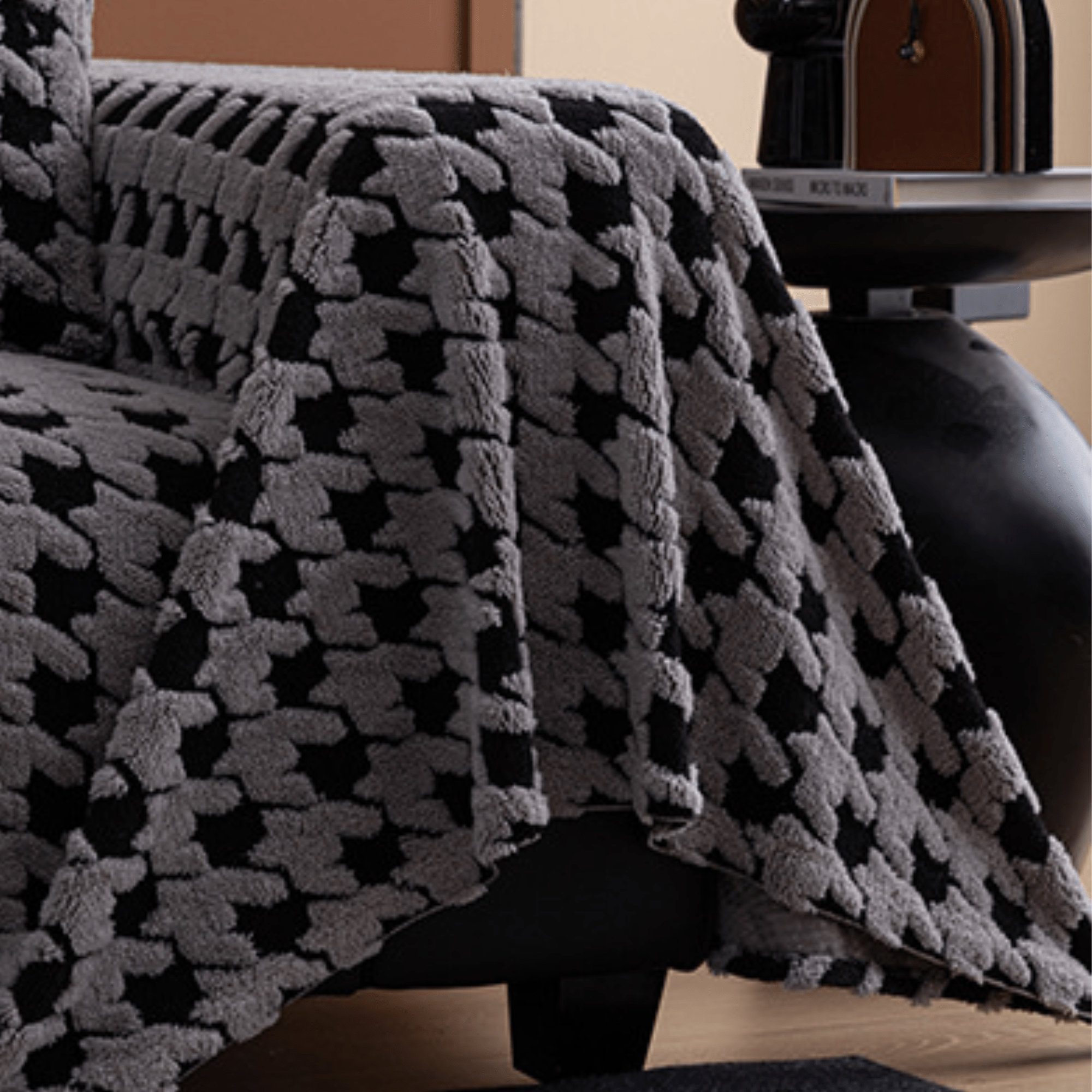 The classic houndstooth pattern adds a stylish touch to any room. Use it as a decorative throw or as a protective layer for your sofa or furniture while enjoying its cozy warmth during chilly nights or movie marathons.