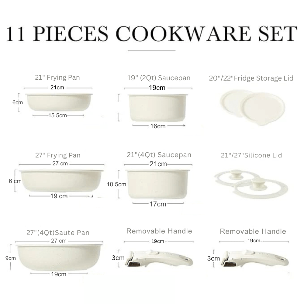 Detachable Handles: The set includes handles that can be easily detached, providing convenient storage and versatility for different cooking needs.