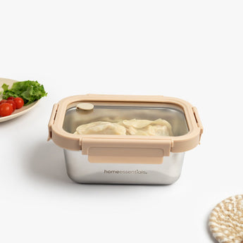 The Stainless Steel Container with Air Vent Glass Lid (800 ml) is a practical, everyday solution for safe food storage and heating. This steel container with glass lid features a built‑in air vent that lets steam escape during reheating, making it ideal for microwave use. Designed for convenience and durability, it is also a reliable microwave safe steel container for leftovers, grains, and cooked meals.
