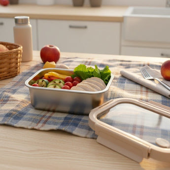 The tempered glass lid includes a secure silicone gasket that locks in freshness and prevents leaks. This airtight design keeps meals crisp, flavorful, and hygienic—perfect for storing salads, cooked dishes, and snacks without mixing aromas in the fridge.