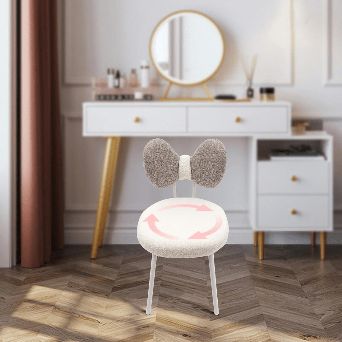Modern 360° Rotatable Vanity Chair with Bowknot Back