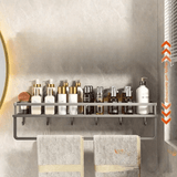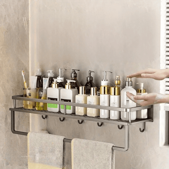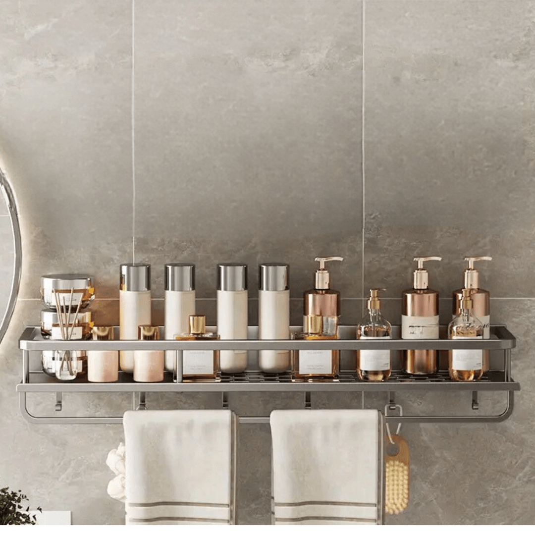 This bathroom organizer shelf is thoughtfully designed to complement modern interiors. Its sleek and minimalist look effortlessly enhances the aesthetics of your space, blending practicality with sophistication. Perfect for organizing toiletries, towels, or decorative items, it provides an elegant yet functional storage solution.