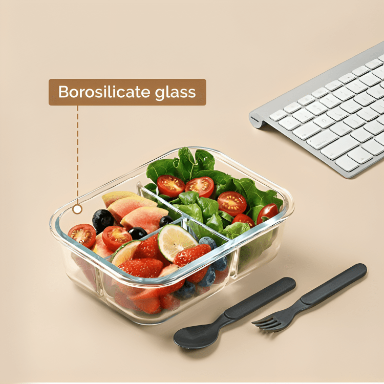 High-quality borosilicate glass resists thermal shock, allowing safe use in microwave (without lid), freezer, and dishwasher environments.