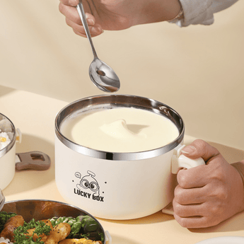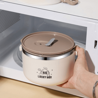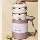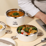 This multi-layer insulated lunch box is made of food-grade 304 stainless steel and PP materials, ensuring durability and safety for daily use. Designed for office workers and students, it features independent partitions to prevent flavor mixing and includes leak-proof lids with built-in sealing rings. Microwave-safe and portable, it's perfect for warm, nutritious meals on the go. Its detachable bottom handle and cartoon accents add convenience and charm.
