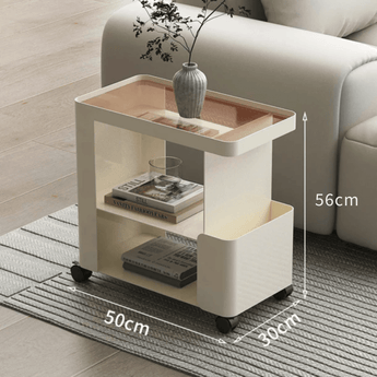Multi-Functional 3-Tier Compact Bedside Table with Storage Shelves & Wheels