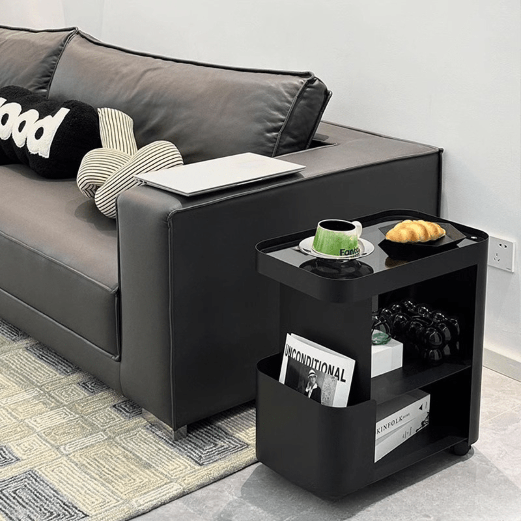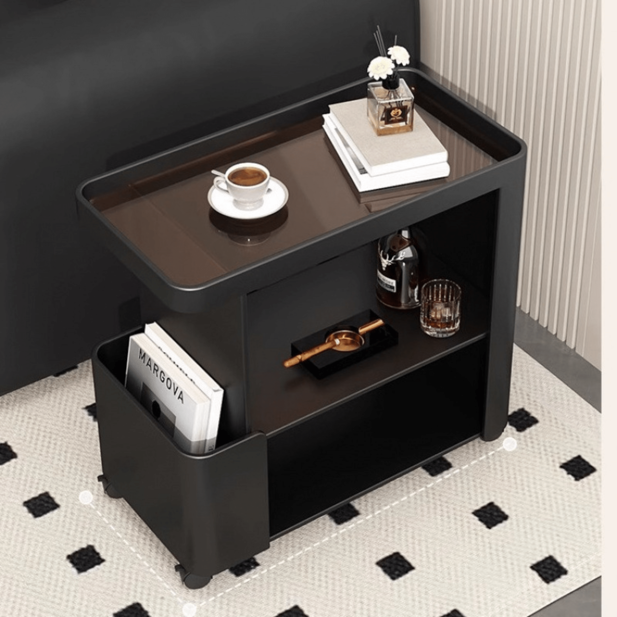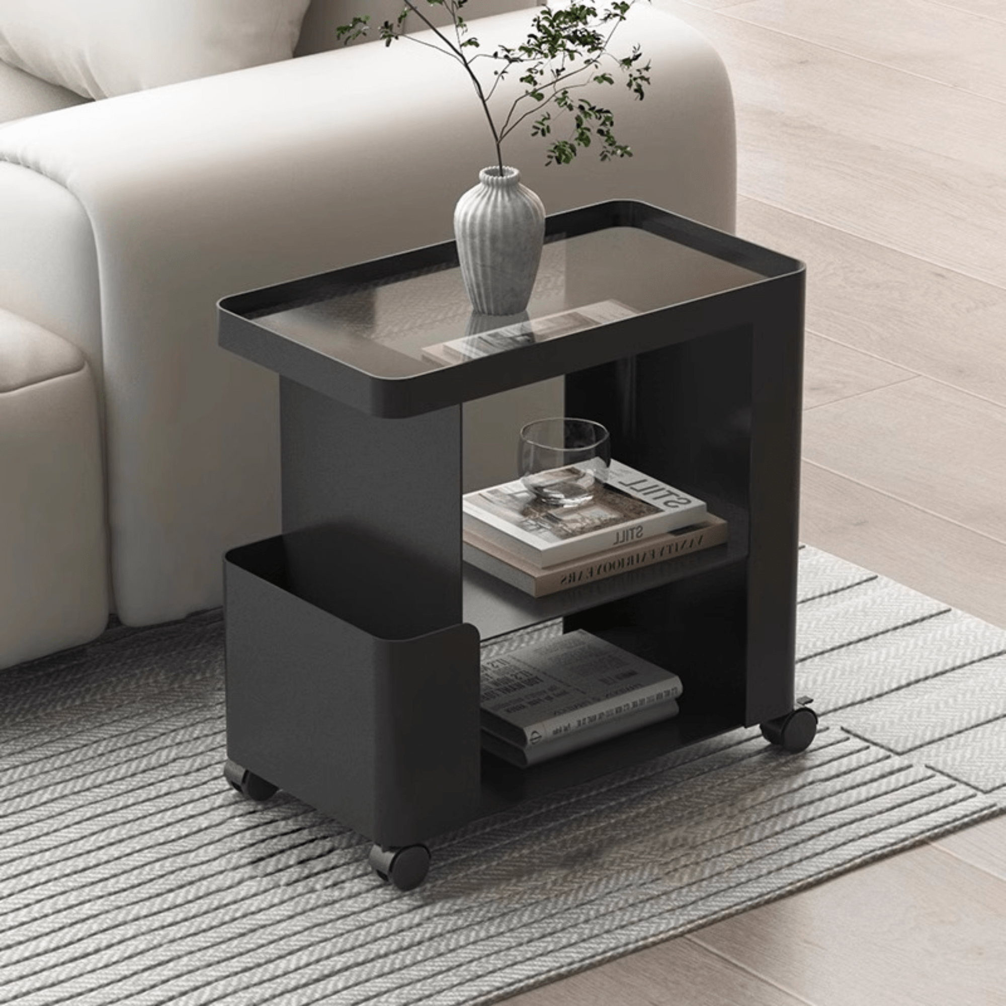 The Multi‑Functional 3‑Tier Compact Bedside Table with Storage Shelves & Wheels is a versatile and space‑efficient solution for neat bedroom and living area organisation. This bedside table storage with wheels features three tiers of shelves to hold books, lamps, bedside essentials, or décor, while smooth‑rolling wheels make relocation effortless. Perfect for small spaces, it also doubles as a practical multipurpose room storage cabinet that keeps items tidy and within easy reach.