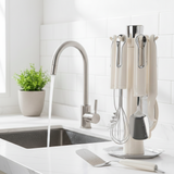 The included stand keeps all your stainless steel kitchen tools with stand neatly organized and easily accessible, saving space on your countertop.