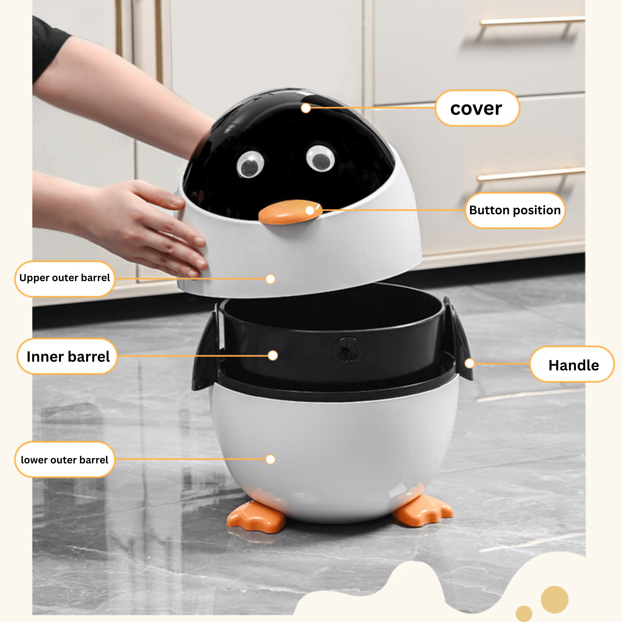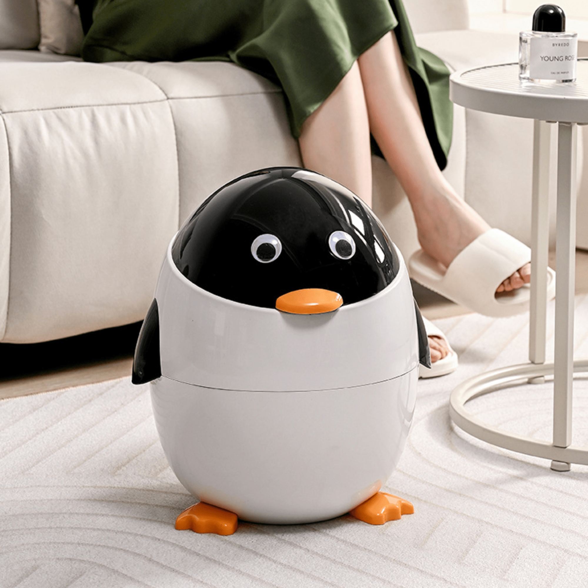 Charming Penguin Design – Unique cartoon-inspired shape that blends functionality with decorative appeal, enhancing the overall aesthetic of your home while providing practical waste disposal.