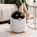 This creatively designed penguin-shaped trash can combines functionality with charm. Made from durable ABS+PP materials, it features a double-barrel design, hidden garbage bag compartment, and a smooth flip-top lid. Its thickened construction ensures durability while adding a stylish and playful touch to any home environment.
