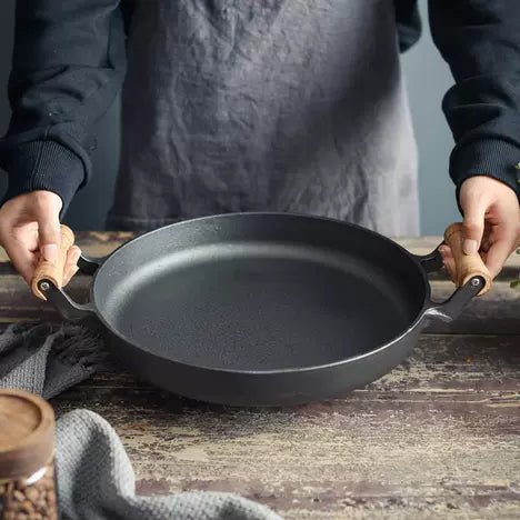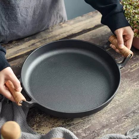The Multi-Functional Cast Iron Non-Stick Frying Pan with Lid & Ear Handles (30cm) is designed for versatile cooking in modern Indian kitchens. Made from durable cast iron cookware, this frying pan with lid ensures even heat distribution for perfect frying, sautéing, and simmering. The frying pan with glass lid allows you to monitor cooking while locking in moisture and flavor, making it ideal for daily meals and family cooking.