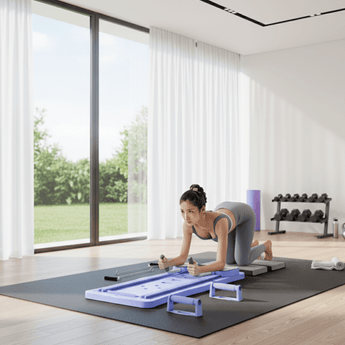 Equipped with abdominal wheel and plank support, this board supports full-body workouts including abs, arms, legs, and core.