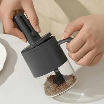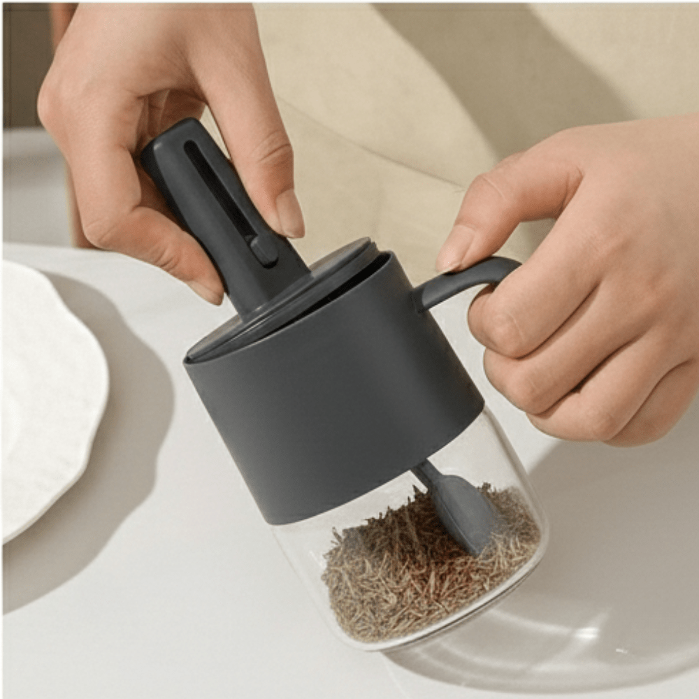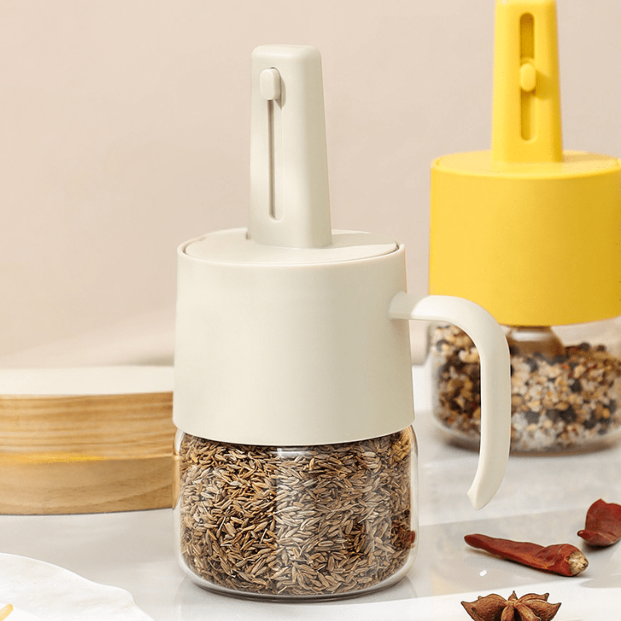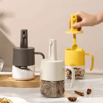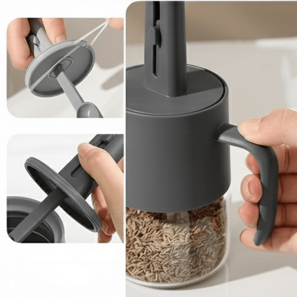 The built-in spoon with a sealed cover offers one-handed operation, making it easy to measure and dispense seasonings without extra tools.